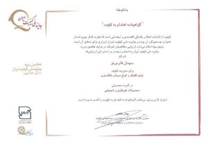 گواهینامه مدیریت کیفیت که تضمین میکند فرآیندهای تولید مطابق با استانداردهای بینالمللی مدیریت کیفیت انجام میشود