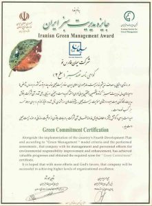 گواهینامه مدیریت زیستمحیطی که نشاندهنده توجه کارخانه به مسائل زیستمحیطی و پایداری در فرآیندهای تولید است.